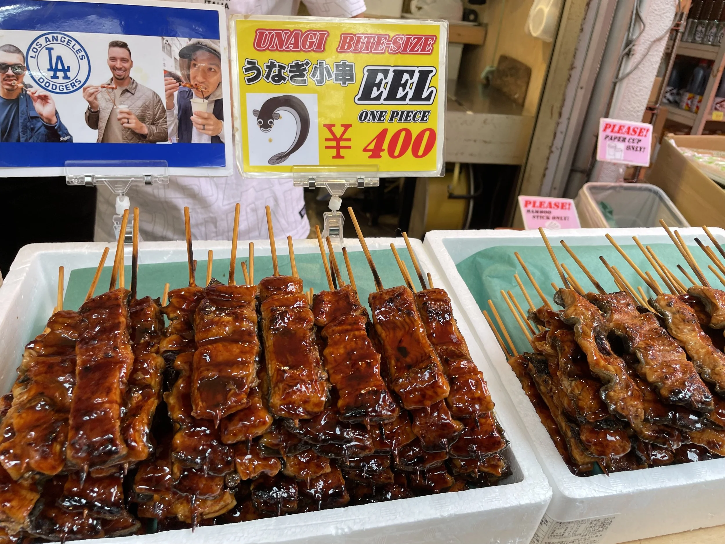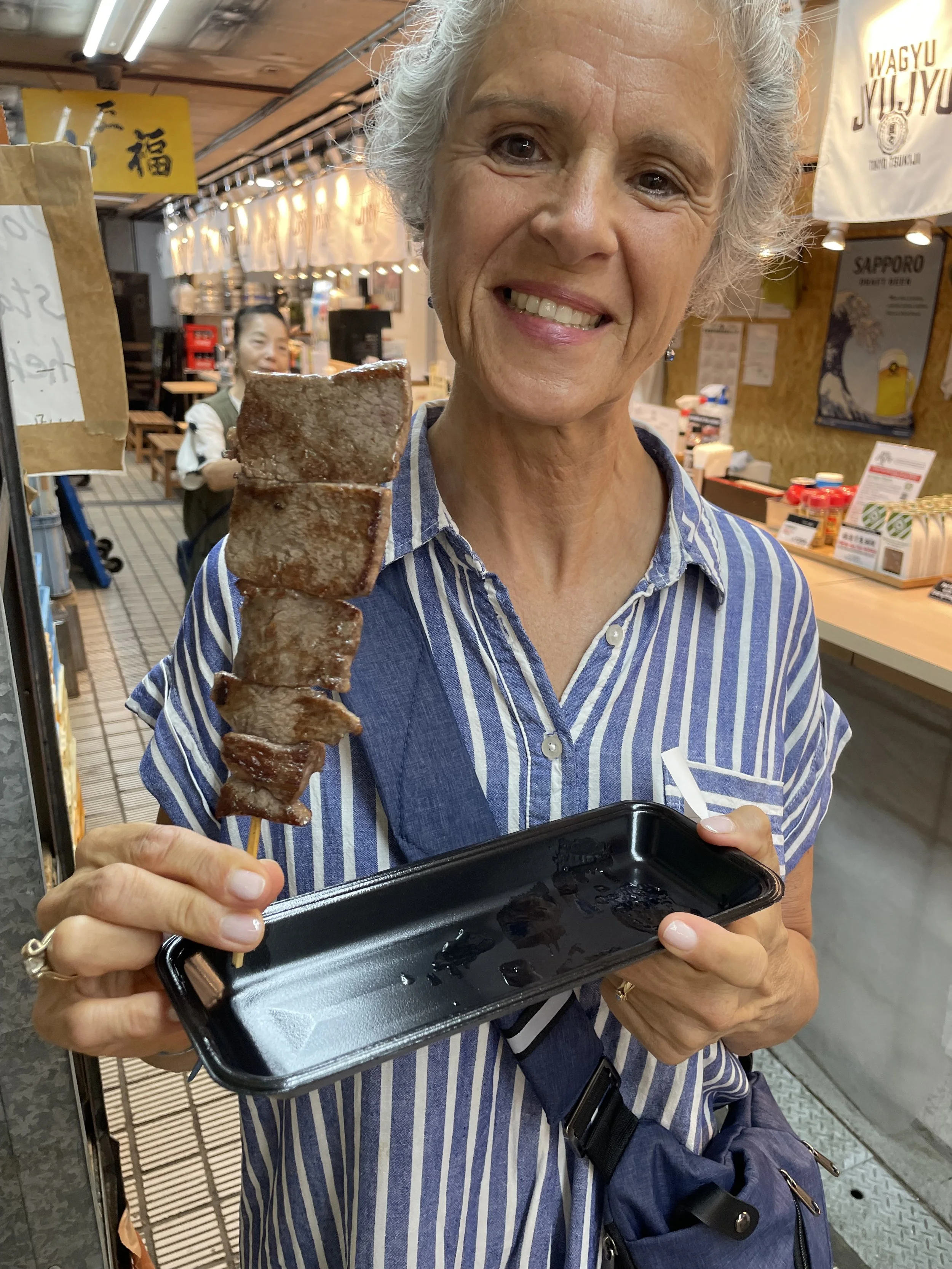 The markets open at 6 am. The first one we saw was Tsukiji outdoor market in Tokyo on day 1, right at 6 am (blame it on the jet lag). The many stalls were vibrant and already full of life at such an early hour. Fresh fish was being cleaned and cut, meats prepared, fruits washed, the aroma of spices hanging in the air. With a wide variety of offerings, it was a perfect place for breakfast. This way, we could sample many things. And we did. The fresh Japanese omelette, phenomenal Wagyu beef on a stick, yummy eel, and delicious fatty tuna sushi sure beat the Western buffet breakfast at our hotel.